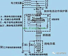 當(dāng)保護(hù)器的輸出線路有剩余電流或其它接地漏電故障時,由于剩余電流的存在,迫使這個剩余電流通過RCT一次側(cè)檢測的三相負(fù)荷電流,其中包括工作零線N的電流的矢量和不再為0,打破了平衡,此時,基爾霍夫方程兩邊為不等于≠即ΣI=IL1+lL2+IL3+ILN≠0,從而剩余電流互感器RCT的磁通量公式也被打破平衡≠。即φL1+φL2+φL3+φLN≠0 此時RCT將檢測出的信號送入E→電子信號放大運算器中,由剩余電流脫扣器來執(zhí)行命令,進(jìn)行分閘保護(hù)。